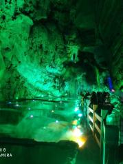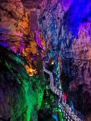 酉阳桃花源由2个景点组成,太古洞是属于地下溶洞,全长3.5公里,加了灯光效果,感觉还不错,就是楼梯上上下下有点累。。桃花源就是一个模拟深山村落的景象。,