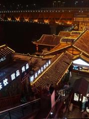 要想看到网传中洪崖洞的绚丽景象就需出了洪崖洞的1层,来到嘉陵江边,从江边这个角度拍摄,终于见证了金碧辉煌的洪崖洞,璀璨的灯火告诉你传统是如何在现代绽放光芒的。
