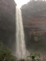 我和爸妈还有舅舅叔叔决定去的重庆万州大瀑布群景区游玩的。起来先是吃个早饭的 大家稍微准备一下 就慢慢的走到公交站台那里的 先是坐的公交车 到达下一站再去转车来到大瀑布景区的 刚下车就听见景区瀑布的水流声音了 进去还排队的 游客挺多的。首先映入眼帘的就是那里的瀑布群了 亚洲第一的规模,当之无愧的。