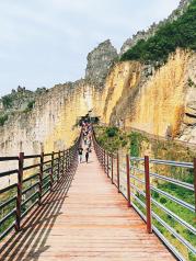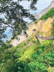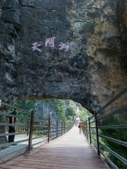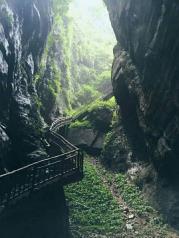 在武陵山大裂谷景区,有一个全长191米,宽2.5米的索桥,桥面离地面的最高处有110米,索桥由天门洞穿过绝壁而过,行走在索桥上,感受到天门洞的险峻景观,风景非常美丽,景色令人震撼。很漂亮的景点,景区很干净,门票包含了所有项目,除了一个自费索道,游览路线很合理,一圈下来也不觉得累,良心景点