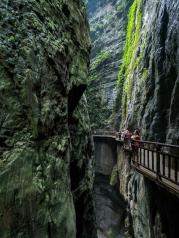 武陵山大裂谷坐落于著名的武陵山脉西北段,以峭壁、奇峰和地缝奇观闻名,系国家4A级旅游景区。景区面积30平方公里,景区内山峰、台地、沟谷等景观高低错落,层次丰富,海拔从600米到1980米,谷底至峰巅间的落差达700多米,山势奇峻多姿,极具壮观之美。景区以地球上最古老的“伤痕”— 剧烈地壳运动所致绝壁裂缝称奇,有着“中国第一动感峡谷”美誉。主要景点有“铜墙铁壁”、“青天峡地缝”。