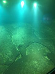 专为长江水文标志白鹤梁修建的白鹤梁水下博物馆,采用“无压容器”方案,游客可至水下通过舷窗直接看到石梁上的题刻,还是十分清楚的。最著名的是康熙年刻的双鱼和黄庭坚题铭。