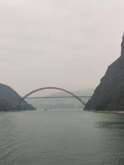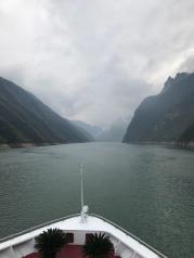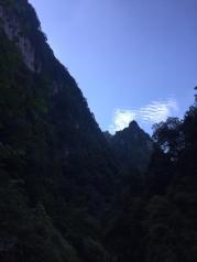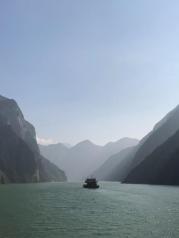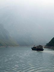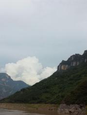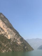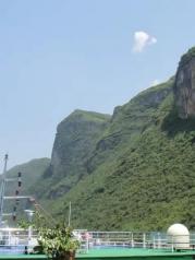 巫峡是三峡中大峽,全长42公里,山高入云,壁立千仞,下临不测,直插江底。天气晴好,诗句中所言“除却巫山不见云”的景象倒没有见到。一路的奇峰突兀,怪石嶙峋,峭壁屏列。有时狭长千古深,迂回曲折,烟云缭绕,是一条美不胜收千奇而怪的画廊。历代文人墨客的诗歌将巫峡一路装点滋润在灿若繁星中。