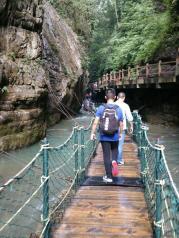 黑山谷还是可以,的确凉快,接近中午的时候有太阳的地方会比较热,根据携程里面别人的建议从南至北走的,但是自己觉得走到渝黔桥就可以掉头回南门这边了,那边基本没什么景点,名字取的好听而已,我们是走到了八角亭坐的观光车到北门,再坐大巴才到南门,于是就要花观光车27,大巴20一个人,水很清澈有鱼,有的家长还在入口买了渔网捕鱼,虽然只是玩,但觉得还是该做好榜样,总的来说,大家都很满意