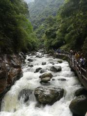 9点过一点点到达黑山谷游客中心。 玩耍路径:先从游客中心坐大客车去南门,从南门一路耍到观光车站,坐观光车到北门,从北门坐大客车回游客中心,完。 门票是90元/张,大客车是20元/张(通票),观光车是28元/张,每人共138元。 个人观点:黑山谷大多数地方都是在谷底走,有较多的地方会被水淋,所以建议先备雨衣或伞。其次,在里面大概会走5个小时左右,最好自备干粮或者在里面吃东西也行。(里面的物价大概是:糍粑5元,水超级贵,酸辣粉15元,套饭24-29元)个人觉得有几个地方可以去看看,首先看的是神龙峡瀑布(虽然和四面山的不在一个级别),其次是有个负离子体验区(好像是这个名字),在体验区确实感觉很舒服。