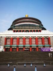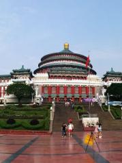 重庆人民大礼堂,建筑恢宏,典型明清建筑风格的仿古建筑,楼顶仿北京天坛祈年殿,非常大气、典雅。 上世纪50年代初,在新中国刚刚诞生不久、百废待兴的年代,建设规模宏大、金碧辉煌、气势恢宏、传世精品的大礼堂是多么的艰辛,肯定需要众志成城的信念,我想,那个年代,参与其中建设的设计师、工程师与建设者们一定是满怀对新生活的憧憬、充满激情、忘我的去投入建设中。中国人民最伟大。 大礼堂入内参观需要购买10元门票,由于行程时间紧,我们没有进大礼堂参观,遗憾,等下次再来重庆,一定进去参观。
