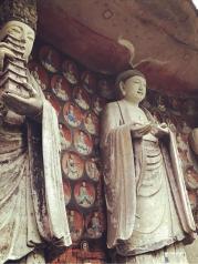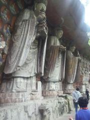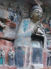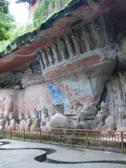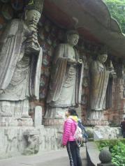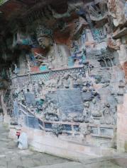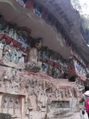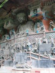 宝顶山景区很大,但大部分都是后来修建的人工景点,步行20分钟需要才能到石窟群或者花10元钱坐电瓶车前往。来看石窟艺术建议一定要请讲解员(120元),这样才能领略到石窟艺术的真正内涵。运气很棒千手千眼观音像修复完毕,让我们此次之行得以欣赏到这镇山之宝。