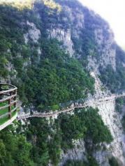 龙缸景区景色很美,山势险峻,玻璃廊桥和玻璃栈道很惊心刺激,从上面透过脚下的玻璃看下面的峡谷、河流,青山绿水,好漂亮,不过夏天太阳照射在玻璃上,有点晃眼。走在玻璃上不要看脚下,往前看,其实也不恐惧。这个玻璃廊桥据说是世界第一悬挑玻璃廊桥,上玻璃廊桥要在门口拿棉织鞋套套在脚上,不易打滑。除了玻璃廊桥,还有2段玻璃栈道,其中第一段有660m多长。游完龙缸景区,晚上可以到歧山草场看日落。 浏览路线:从北门的天河广场---坐观光车---到玻璃廊桥---再坐观光车---回到天河广场---再步行(往右)---经过玻璃栈道---月影洞---到龙缸---从南门出。