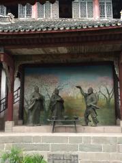 张飞庙地势有点险,主要是纪念张飞。庙内的布局摆设也都是以张飞为主题的,塑像主要包括了刘关张三兄弟、桃园结义,还有令人印象深刻的“张飞睁眼睡觉”的雕像,确实算得上是惟妙惟肖了。还不错值得一看,还可以看江景