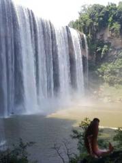 万州大瀑布是亚洲第一大瀑布,去的时候刚好前2天下了大雨,水量很大,很壮观,一点也不比黄果树瀑布逊色。整个游览路线基本上就是围着这个瀑布绕一大圈:从景区大门步行或坐游玩滑车进去---看瀑布---坐竹筏游玩(划到瀑布的近处,可以感受扑面而来的水珠飞溅)---然后过桥(不玩竹筏的,直接过桥)---游览三国东吴甘宁将军的塑像和墓---穿水帘洞(从瀑布后面的一条路穿过)--- 走栈道(往回走)---出景区。