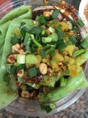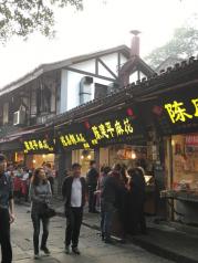 磁器口古镇街道跟大多数四川古镇的格局是一样的,弯弯曲曲,上上下下,青石台阶,整条街弥漫着牛油熬制火锅底料的味道,让我想起了小时候的家乡。 小吃一类的,糍粑不如小时候的好吃,更象北方的驴打滚,记得我小时吃的是石兑窝臼出后粘上炒熟的芝麻,这里是粘的豆面,口感差多了。记忆最深的是有人在街上做豆瓣酱,那剁刀、木盆和香味,让我想起小时候在老家跟妈妈一起做豆瓣酱的情形。鸡丝豆腐脑一般,陈麻花门前排了好长的队,碰到好几个卖“土匪烟”的,没敢买。 其他的都一般了,不过因为跟记忆中小时候老家的样子很象,所以还是蛮亲切的。