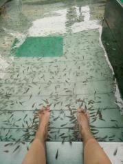 和朋友约着自驾游,统景温泉是我们的第一站,携程网预订票比景区便宜10元一张,我们一行10人节约了100大洋,实惠!由于景区在升级改造,冲浪大池和其他几个池子没有开放,现在只开放了北欧风情区,小鱼疗池和大鱼疗池大力推荐,很不错!一个池子泡十几二十分钟下来相当舒服惬意。