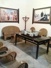 参观50号周公馆,逛完桂园,又来曾家岩50号,很多新中国领导人都在此居住过,一共三层,里面很大,转一圈经过很多房间,楼梯是木质的,比较窄小,棕色木地板,白色墙壁,木床木桌,竹藤椅,床上铺着凉席,最上面一层是阁楼,陈设简单。