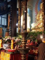 华岩寺里有华岩洞,景区还是很大的而且不收门票,里面有个金佛很大。寺庙分为老寺和新寺,老寺在山壁洞处,这里的华岩洞历史非常悠久,已经不知道来历了。大家看到的都是新寺,贴金的七佛塔是纯金贴的,但不是纯金打造,寺庙面积不小,氛围很浓厚。