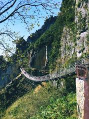 龙水峡地缝,自由行的话,可以在当地入一日团,大概需要3个小时的车程可以到达,当地的农家乐饭菜挺不错,可以花费25元欣赏玻璃舞台,然后可以拍照。景区风景很不错,因为我们去的时候电梯正在检修,所以走2号入口,走到山下。山脚下有当时拍摄黄金甲的四合院,变形金刚的恐龙。因为只有一条路,所以不需要走回头路,有水的地方空气潮湿,而且清凉,很值得去看看~