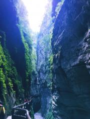 龙水峡地缝交通很方便,一般都是和天生三桥一起游玩。可从天生三桥出来后转乘交通车到地缝入口,30分钟左右。地缝下去最后一段是一个80多米高的电梯,还是多壮观的。地缝有些地方特别凉爽,很神奇,就好像里面安了一个空调一样。地缝深处还有两潭又清又凉的水,感觉这是整个地缝最值得的地方,再往后走就没什么特别的了,和大多数峡谷一个感觉,什么武陵山大裂谷,金刀峡之类的。 不过武隆旅游都有拍纪念照这个服务,可以免费领小照片和小挂件,挂在书包拉链上不错!