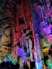 一早开车到南门,换票进龙缸景区。咨询时,说先看龙洞再去看龙缸。下台阶到龙洞5分钟,是个小型溶洞,进深一百来米,看过武隆芙蓉洞景区或酉阳桃花源景区太古洞的,不建议看。走景区公路,再爬山路到龙缸,周边杂草丛生没有清理,站在台阶小路栏杆旁,根本看不到龙缸底部,走到观尤缸最佳位置,玻璃栈台处往下看,还是野草野树,无语了。景区应该清理一下龙缸周遭遮挡游客视线的这些杂草,让游人看清龙缸的真面目。龙缸后,有两段玻璃栈道可走,很美,但个人没有找到那种惊心动魄的感觉。眺望周边,大山壮阔,山脚下Ⅴ字型水库水体呈蓝色,阳光下美的眩目。时间约1小时。山路走完到了北门广场,坐景区收费电瓶车去看‘廊桥’,挺壮观的,约40