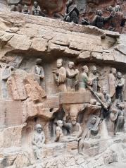 寶頂山石刻値得一去再去,這次花了三個小時仔細聽導游講解,自博物館開始談到大足各處的石刻,還有佛教東傳路徑,三個小時還只是匆匆路過,來不及瞧仔細,聽聽石刻的典故、藝術價值所在。 參觀石刻第一次一定要請導游解説,第二次以後,就可以自己细细品味石刻之美了。 這次可惜佛祖涅槃石刻正在修復,還需要一兩年,正好給自己再來的理由。
