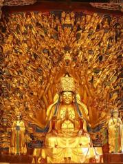 大足石刻位于重庆市大足区境内,是唐末、宋初时期宗教摩崖石刻,以佛教题材为主,儒、道教造像并陈,是著名的艺术瑰宝、历史宝库和佛教圣地,有“东方艺术明珠”之称。 大足石刻群有75处,5万余尊宗教石刻造像,总计10万多躯,铭文10万余字,其中以宝顶山和北山摩崖石刻最为著名,其以佛教造像为主,是中国晚期石窟造像艺术的典范。与敦煌莫高窟、云冈石窟、龙门石窟、麦积山石窟等中国四大石窟齐名,是古代汉族劳动人民卓越才能和艺术创造力的体现。