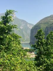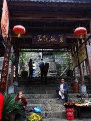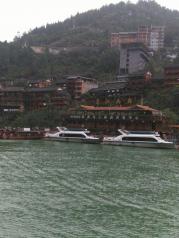 很小的时候就知道龚滩的大名,因为那时候交通闭塞,人员物质的进出只能通过乌江的水路运输,并且在龚滩这个位置由于水浅而急,船只必须通过绞滩机,用钢丝绳拉上去。十多年前就开始多次计划出行,但“有时间的时候没钱,有钱的时候没时间”,因而一次次地错过了与文艺女青年们在那里写生采风豪饮梅子酒的机会。现在终于有机会看到的龚滩古镇因为乌江水电站的建设,早已变成了一个复建的“新城”。好在乌江还是那么黛绿着静静地西去,乌江画廊的各种奇特山峰绝壁依然在云雾缭绕里伫立守望。 复建的古镇,严格按原来的比例、位置,利用原建筑拆迁后的所有材料复建,总体来看还是恢复得不错,基本还原了原来的旧貌。