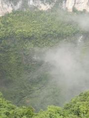 小寨天坑是世界最大天坑,还不值得看吗?阿的利在这里走过钢丝跨越天坑,坑底有一条地下暗河,两个岩溶洞,经常起雾。从上往下看,深不见底;从下往上看,坐井观天。坑底水流湍急,水声喧哗,一边绝壁耸立,一边植被茂密。下去要踩2888个台阶,下去容易上来难,体力不好勿到底。
