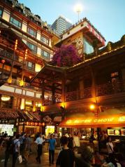 洪崖洞,现实版千与千寻。一直以为台湾九份是最贴切的,当站立洪崖洞,夜色落幕,华灯初上,那些光亮指引着我们。洪崖洞有11层,每层都有特色商家。爱蹦哒的孩纸,可以一层一层闲逛,只是电梯实在拥挤。洪崖洞夜景不错,落座酒吧,沿江边瞭望,看船来船往,看各地游客,天南地北。时间会沉寂许多。灰常值得蹦哒咯地。
