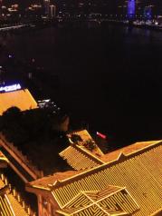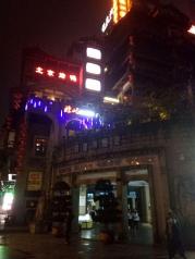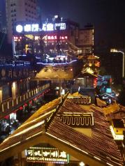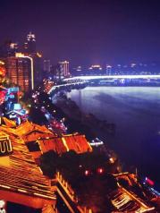 洪崖洞在网上的名气很大,上次重庆行因时间关系错过了,这次是专程来参观的。洪崖洞地处长江与嘉陵江的交汇滨江地带,嘉陵江大桥旁。以巴渝传统建筑特色的“吊脚楼”风貌为主体,依山就势,沿江而建,解放碑直达江滨。商业氛围很浓,夜景很漂亮,晚饭可以考虑在这里品尝各地的特色美食。拍照的人特别多,坐在江边的餐厅喝茶休闲赏两江夜景很是惬意。重庆的必游景点之一,游览后再去朝天门看夜景。