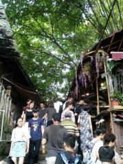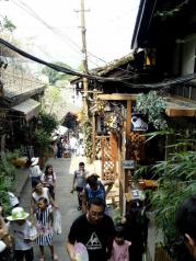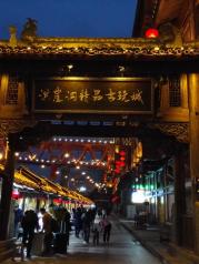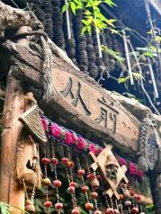 老的重庆,譬如朝天门已是高楼林立,感受老重庆,就得乘轻轨2号线去磁器口。2号轻轨,就如时光穿梭机,从繁华的解放碑商圈,穿越到明清风的磁器口。 磁器口是一个古镇,嘉陵江边。原来大约是郊区,随着城市的快速扩张,这一片现在也呈现出都市的繁华。古镇就成了现代都市包围的孤岛。 大都市里的古镇,游人自然很多,人头攒动,熙熙攘攘。这里有很多小吃:陈麻花、毛血旺、酸辣粉、椒盐花生等等,可以边走边吃,也可坐在小店里慢慢吃。倘若爱好喝茶,你还可以去茶馆,或品茗,或看老街的行人。