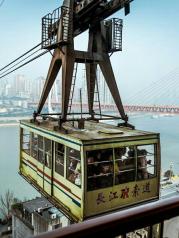 重庆的长江索道如今已是旅游的一个景点了,门票价格也连着涨了几次,现在往返票需要30元,上下班高峰的时候当地人刷公交卡是有优惠的只要几块钱。全程很短,也就三四分钟,晚上比较好看,灯光亮起来,有种梦幻的感觉。 要坐索道的朋友可以坐轻轨到小什子站下,出来就是售票处。买了票排队坐大电梯去索道口,索道车厢很大,可以装几十个人。