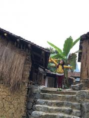 明仕田园是花千骨的拍摄地,还有个花千骨出生的小茅屋,风景很美,有一段的风景跟二十元人民币上的照片很像,我们这条竹排上的导游四娃也很健谈,还能唱山歌跟船上的莫老爷对歌,莫老爷还热情的教我们用榕树叶吹曲子。
