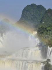 德天瀑布的环境非常棒,瀑布也很壮观,最好8月到10月雨季,水大,可以媲美黄果树大瀑布,不过彩虹很少见,可以竹筏近距离接触感受一下水汽!天气热,市场比较乱!但总的来说瀑布本身还是很值得一看的!