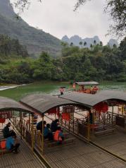 春节期间来明仕田园的游客太多了,去竹排漂流的入口有点小远,接送的车小排队太长。我们先乘坐竹筏,有壮族当地妹子会做讲解,景色非常棒,然后就是一段步行的路,可以经过很多《花千骨》的拍摄景点,还是很棒的,大好河山!