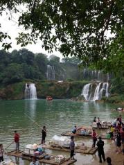 德天瀑布风景很好,适合拍照,对岸就是越南,不时有人撑着竹筏开到岸边兜售越南香烟(也不知是不是越南人,说的也是普通话),走到瀑布上面就是界碑,界碑旁是一个越南集市,这里的东西挺多,还可以砍价呦。