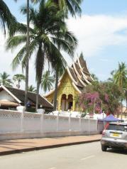 琅勃拉邦著名的王宫博物馆,可我我们走到那边时已经关门了。门口的夜市开始设摊了。只能隔着门缝看了看里面,上了对面的浦西山也能看到。