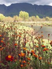 从丽江开车去沙溪需要2个小时,下高速之后山道弯路窄,一定多注意。早上的小镇很美,碰巧遇到一个客栈,名叫遇见,小院种满了各种鲜花很美,外国游客很多。