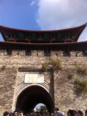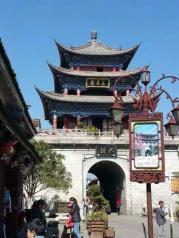 大理古城是原来南诏国和大理国的都城。古城的城门很有特点,据说西游记里女儿国就是这里。古城里面都是店铺,感觉许多古城都是这么商业化。街上有银饰品店、鲜花饼店,鲜花饼店门口有漂亮的女孩在分捡玫瑰花,鲜花饼很好吃。特色的还有乳扇、饵块,白族的三道茶等
