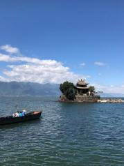 大理小普陀感觉是人们可以上去的最小的岛屿了,在洱海中央,可以直接骑车到码头,然后坐船上岛,岛很小,几分钟就逛完了,门票就几块钱,但是风景不错。岸上有着小普陀的石头字样,远远看去还是比较别致的。
