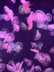 老虎滩海洋公园的水母超级好看,喂海豹也还不错,还有海鸥在附近飞来飞去,就是雪场太坑了,高度就是一个小斜坡。适合亲子游