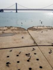 星海广场很大,不愧是亚洲最大广场。周围有酒店,展馆,商业区,别墅区,是个高尚人群居住生活的地方啊。 海滩有很多鸽子和海鸥,正对着跨海大桥,还是挺壮观的。
