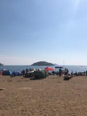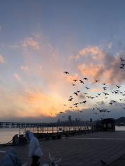 星海广场。很漂亮的海边,人不多又很干净。有海鸥环绕在天上,不怕人,可以喂他们面包渣。附近有娱乐场,旋转木马晚上很美。离海洋世界很近,可以去顺便看看。