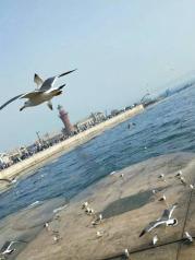 星海广场很漂亮,有很多海鸥和鸽子也不怕人。一直围着人转。可以看到海和跨海大桥。冬天的大连一直雾茫茫的。有点可惜,去的时候没有看到女骑警。