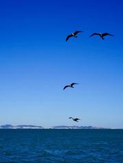 到大连怎能不到星海广场,曾经是大连最有人气的地方而声名远播,如今虽然往日的风光不再,但依然吸引人们去一看究竟,深夜秋的广场,天空依然那样蓝,海水依然那样碧,海鸥飞翔,波光粼粼,一下子可以顿悟,不论人如何变幻,大自然依旧美好。