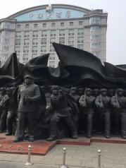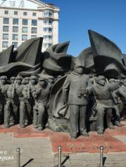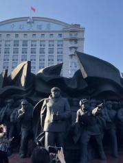 鸭绿江公园就沿着鸭绿江岸建成,包括鸭绿江大道、鸭绿江大桥、鸭绿江断桥和雕塑与绿化,鸭绿江公园的正门是一个巨大的雕塑,我查询了一下,应该是抗美援朝的纪念雕塑。公园里有很多穿朝鲜服饰拍照的,挺有特色的。