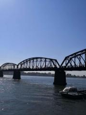 鸭绿江断桥钢铁大桥是被炸断的,能够感受战争的残酷,武器的威力。一桥飞架两地,双边共祈和平,世界要大同