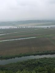 虎山长城我比较喜欢,不用坐观光车,走几步就考试登长城长,不太高,也不算陡,走走停停一个小时就到山顶了,长城边都是李子树,着手可得,到处一片绿色,并不枯燥。到了顶上,放眼朝鲜的田地,很漂亮。我觉得也不错。下山台阶很逗,扶着扶手慢慢走,这段路比较累,走到一半,给你两个选择的路。我们选择难走的路,都是山路,石头,不过离朝鲜也就更近了,绕着山,欣赏着朝鲜的美景,还真是美。大概再走半个多小时就下山了。总路程一共也就2.5小时,我们和老人就都下来了。