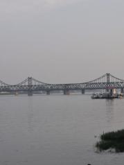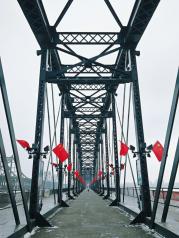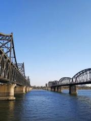 鸭绿江断桥是本朝当年不惜一切救援北韩的证据之一,典型的蒸汽朋克风格的铁桥,在今天这种桥已经不多了,除了丹东可能只有天津兰州还有。大桥已经被打断,但剩余部分仍可行走,走到尽头可遥望那片充满着讽刺的土地。