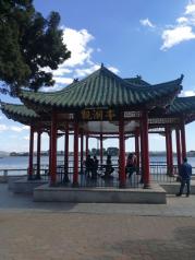 鸭绿江公园边,直面对面朝鲜国。很干净的公园。就是河边兜售产品(尤其是朝鲜特色产品)的大妈略烦。从断桥往回看公园和城市,感觉确实发达太多了,与对面相比。