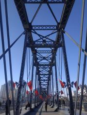鸭绿江断桥。两座桥一新一旧,新的还可以看到朝方的车辆进出。这边的游人还是很多的,川流不息。桥上建立了很多新的景点,比如碉堡一类做旧感十足,完全没有必要。本身确实没啥看点,除了爱国主义教育外,没有旅游意义。
