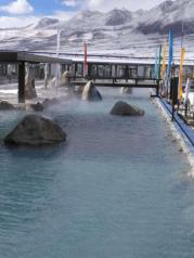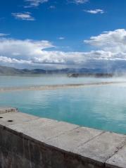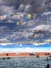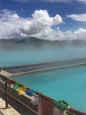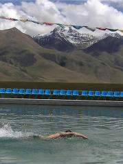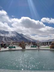 羊八井距离拉萨87KM,但是泡温泉的泳池距离青藏路口大约还有8KM。据说羊八井地热温泉浴可以治疗多种慢性疾病。温泉分室外泳池和室内泳池, 室外泳池远远可以看见5500至6000米以上的雪山, 此时最大的享受莫过于跳进温泉遥望雪山了。可能是水里含有多种矿物质,身上被泡的溜溜的滑