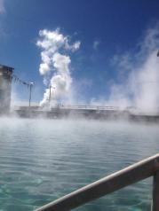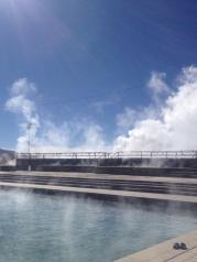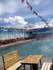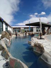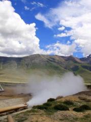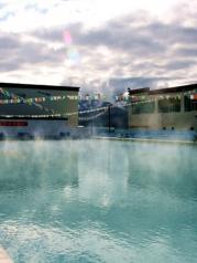 羊八井温泉就在羊八井地热电厂对面,远远就可以看到袅袅升腾的热气。 泡温泉分室内游泳池、室外游泳池以及室内4 个小温泉池,建设比较简陋,没有冲淋设施,但温泉货真价实。 水质清澈,因为身在高原,没有枯叶小虫,极目远眺即可见雪山草原,即使在室内瓦蓝的蓝天和灿烂的阳光也会让人充满好心情。温热的泉水,没有硫磺味道,洗去这一路旅游的疲惫和污秽,好一个偷得浮生半日闲啊。
